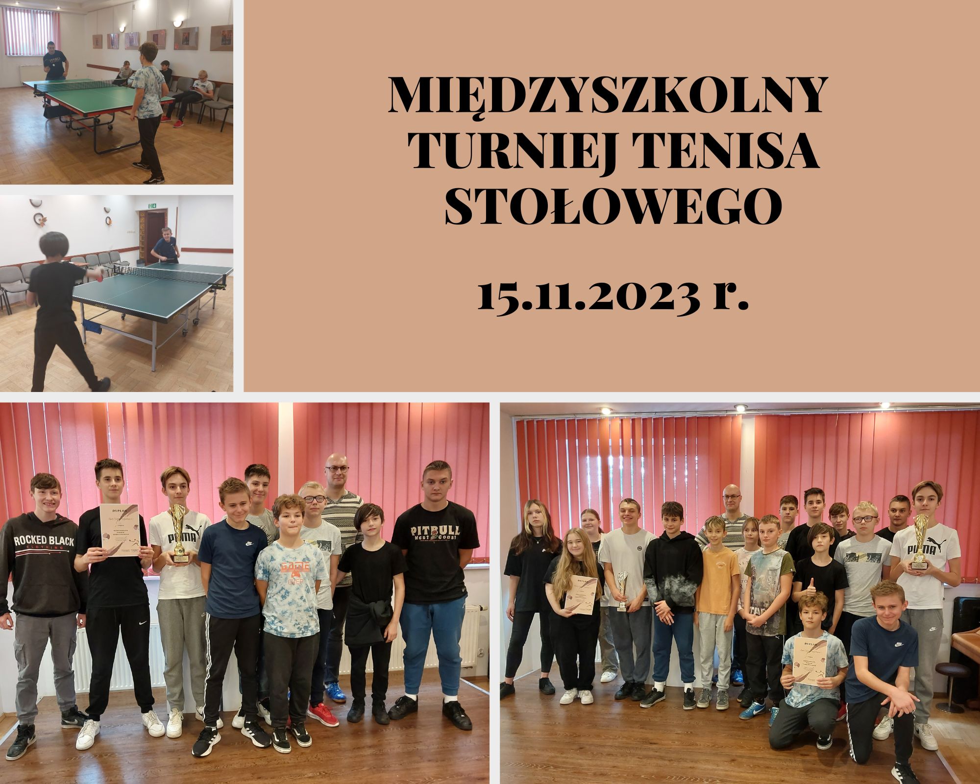 Zespół Szkolno-Przedszkolny nr 2 oraz Miejska Szkoła Podstawowa nr 15 rozegrali Międzyszkolny Turniej Tenisa Stołowego, zorganizowany w dniu 15 listopada przez Dzielnicowy Dom Kultury w Dąbrówce Wielkiej. Turniej przebiegał w zdrowej, sportowej atmosferze. Podczas wydarzenia można było zaobserwować duże zaangażowanie uczniów,a co za tym idzie właściwą prezentowaną przez nich postawą gry fair-play. W wyniku sportowej rywalizacji wyłoniono zwycięzców. I tak I miejsce zdobył ZS-P nr 2, zaś II należało do MSP nr 15. Turniej zakończono rozdaniem pucharów i dyplomów.