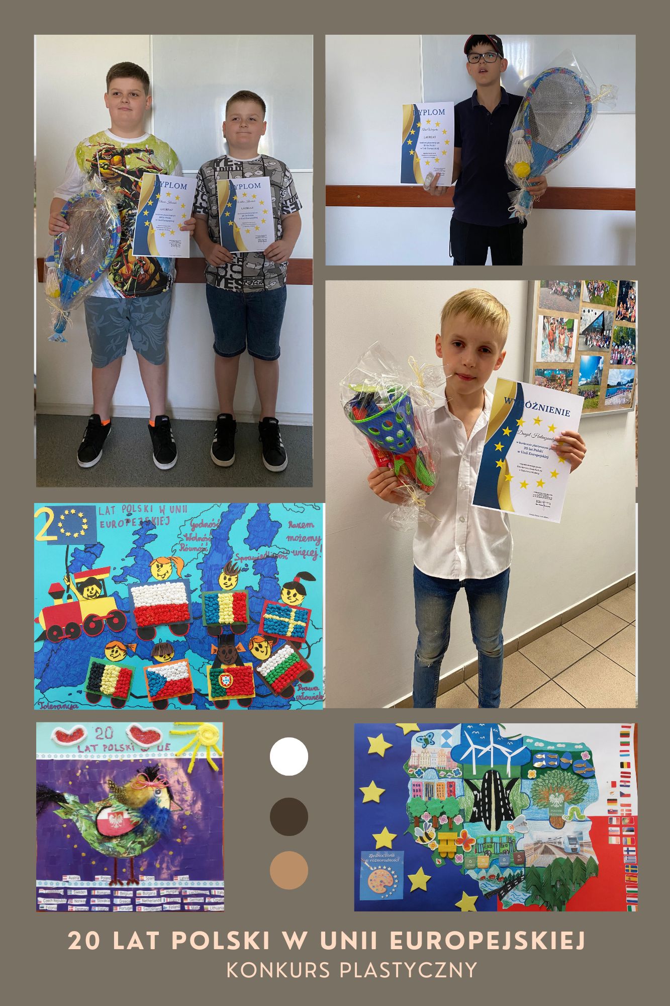 14 maja w Dzielnicowym Domu Kultury w Dąbrówce Wielkiej nastąpiło rozstrzygnięcie konkursu plastycznego na tema 20-lecia Polski w Unii Europejskiej. Konkurs miał charakter indywidualny i adresowany był do uczniów szkół podstawowych w klasy III – VI. Cel, który przyświecał temu wydarzeniu, to przede wszystkim rozpowszechnianie wśród dzieci i młodzieży wiedzy na temat Unii Europejskiej, propagowanie wiedzy o Europie poprzez kształtowanie poczucia jedności europejskiej, propagowanie idei zjednoczonej Europy oraz rozwijanie zdolności plastycznych i kreatywności artystycznej. Na konkurs dostarczono prace z piekarskich placówek oświatowych, wykonane w różnych technikach, zgodne z tematem. Jury dokonało wyboru laureatów, zostali nimi: Alan Warzecha oraz Wiktor i Oliwier Kłosińscy. Wyróżnienia otrzymali: Oliwia Fijałkowska i Danyil Halanzovskyi. Zwycięzcom serdecznie gratulujemy!
