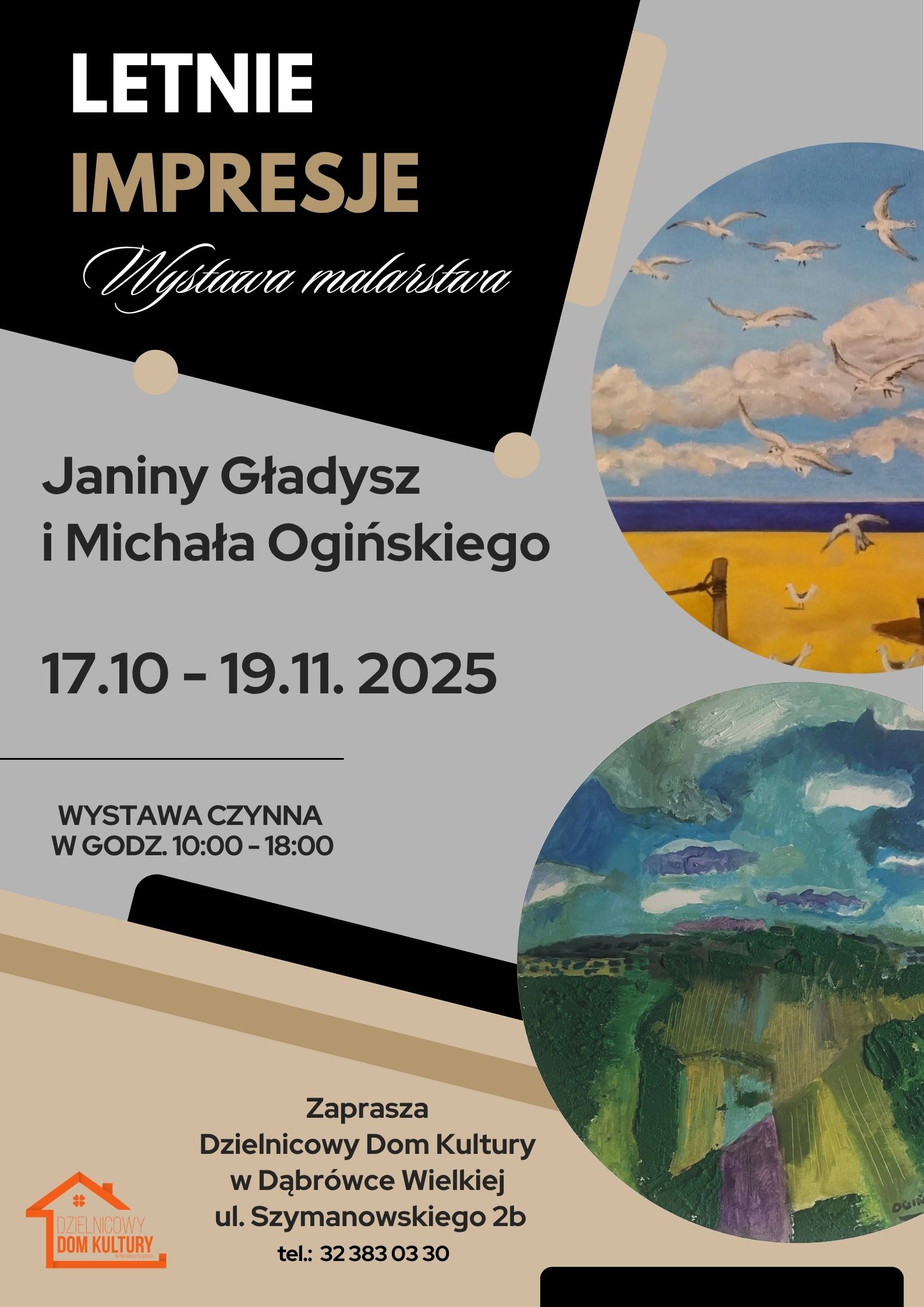 Przypominamy, że trwa wystawa "Letnie impresje"- to artystyczna podróż Janiny Gładysz i Michała Ogińskiego przez emocje i wrażenia, jakie niesie ze sobą letnia pora. Na ekspozycji można zobaczyć prace, które ukazują piękno natury, intensywne kolory, radość i lekkość, charakterystyczne dla letnich dni. Widzowie mogą zanurzyć się w krajobrazach pełnych słońca, kwiatów, plaż i wakacyjnych wspomnień.