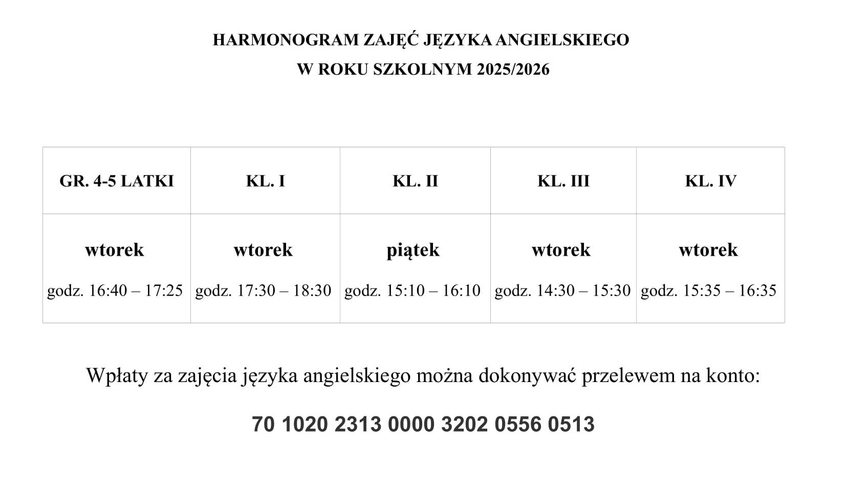 Prowadzone w naszej placówce zajęcia z języka angielskiego skierowane są do dzieci najmłodszych 4,5,6 letnich oraz uczniów szkoły podstawowej. Mają na celu poszerzenia wiedzy z zakresu języka obcego. Stwarzają możliwość prowadzenia konwersacji w formie luźnej rozmowy.